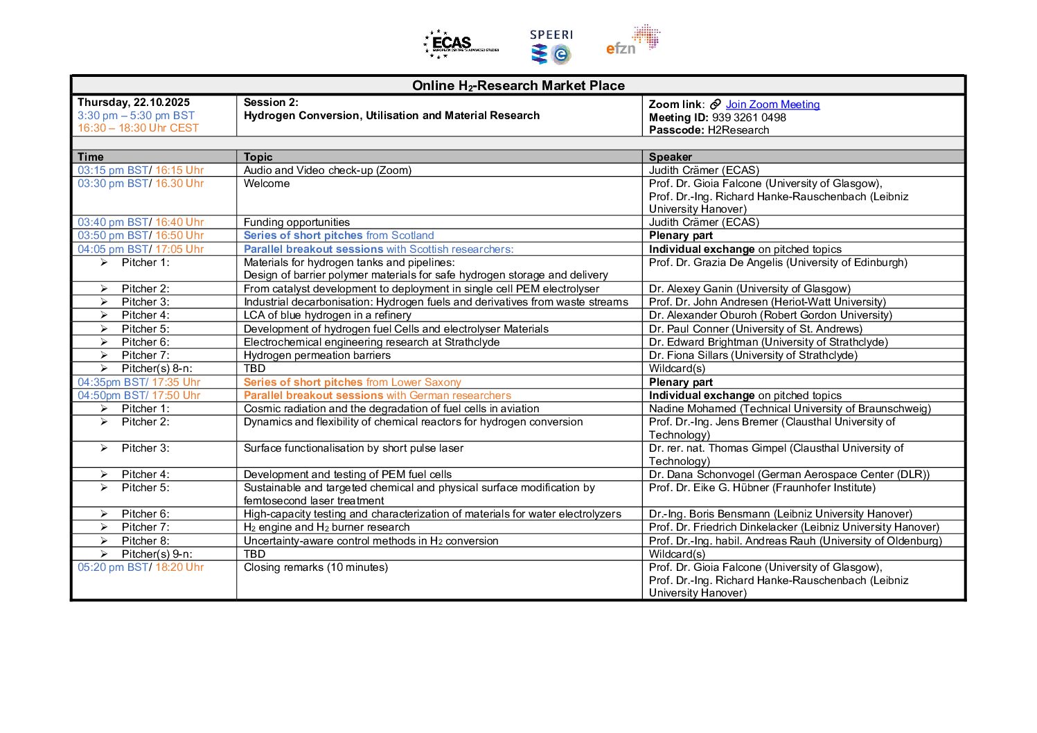 This event is part of the broader Flagship Initiative “Lower Saxony – Scotland Strategic Energy Partnership” designed to support joint work on the energy transition. Leveraging Scotland’s strengths in hydrogen production and Lower Saxony’s strategic infrastructure and industrial demand, the Market Place serves as a first step in fostering targeted academic collaboration.